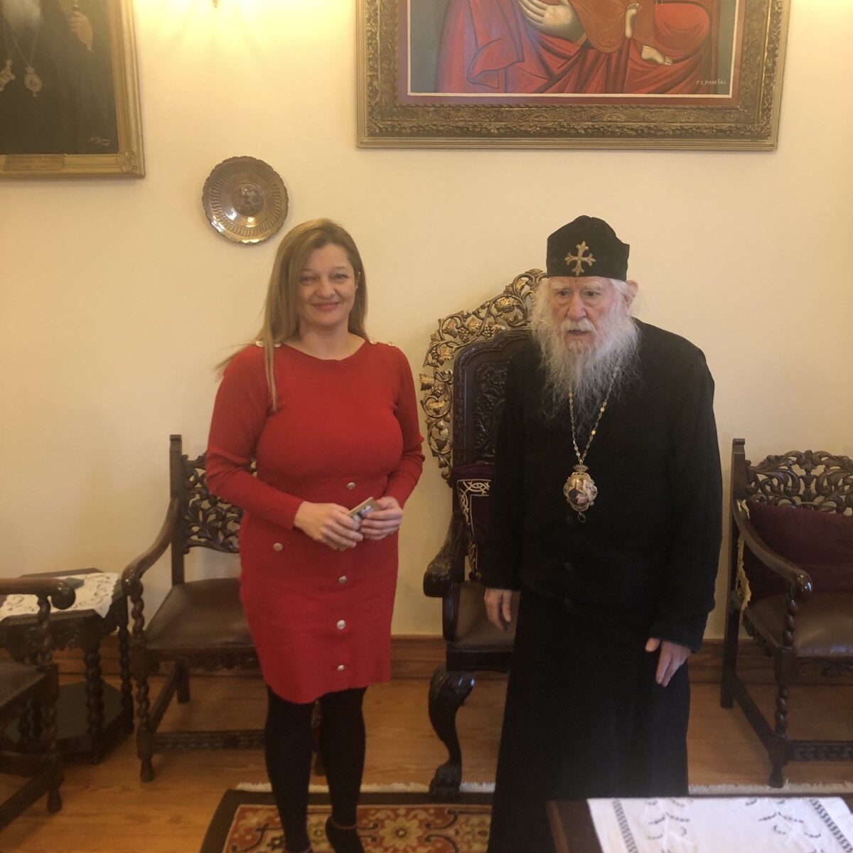 Η συνάντηση πραγματοποιήθηκε ανήμερα της εορτής της Οσίας Δομνίκης και οι δύο γυναίκες της Ν.Δ. αντάλλαξαν θερμές ευχές.