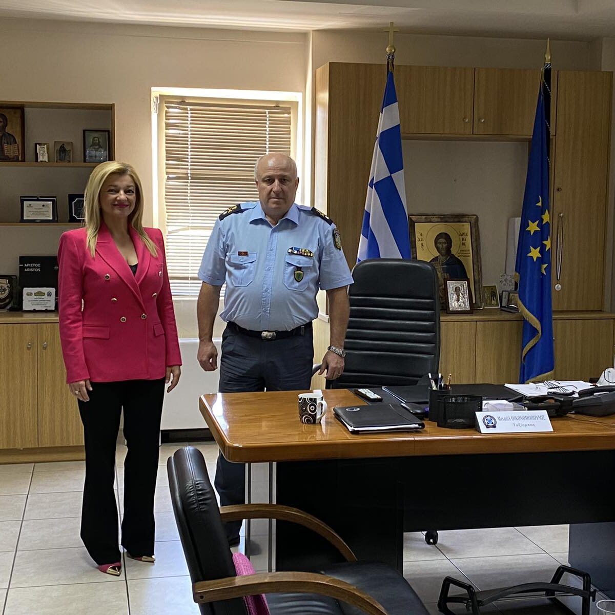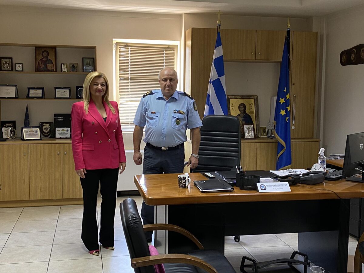 Στο πλαίσιο της επίσκεψής της, η κα Αυγερινοπούλου συναντήθηκε και με τον Αστυνομικό Διευθυντή Ηλείας, Ταξίαρχο κ. Μιχάλη  Οικονομόπουλο, όπου συζήτησαν μεταξύ άλλων, για θέματα που αφορούν στην έννομη τάξη στο Νομό, τις ανάγκες της Αστυνομίας σε  προσωπικό και εξοπλισμό και κυρίως τις στεγαστικές και κτιριακές ανάγκες των Αστυνομικών Τμημάτων της Ηλείας.