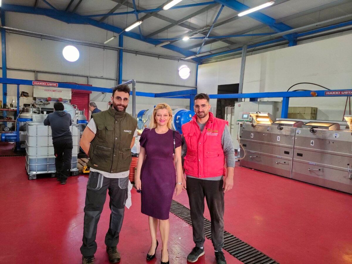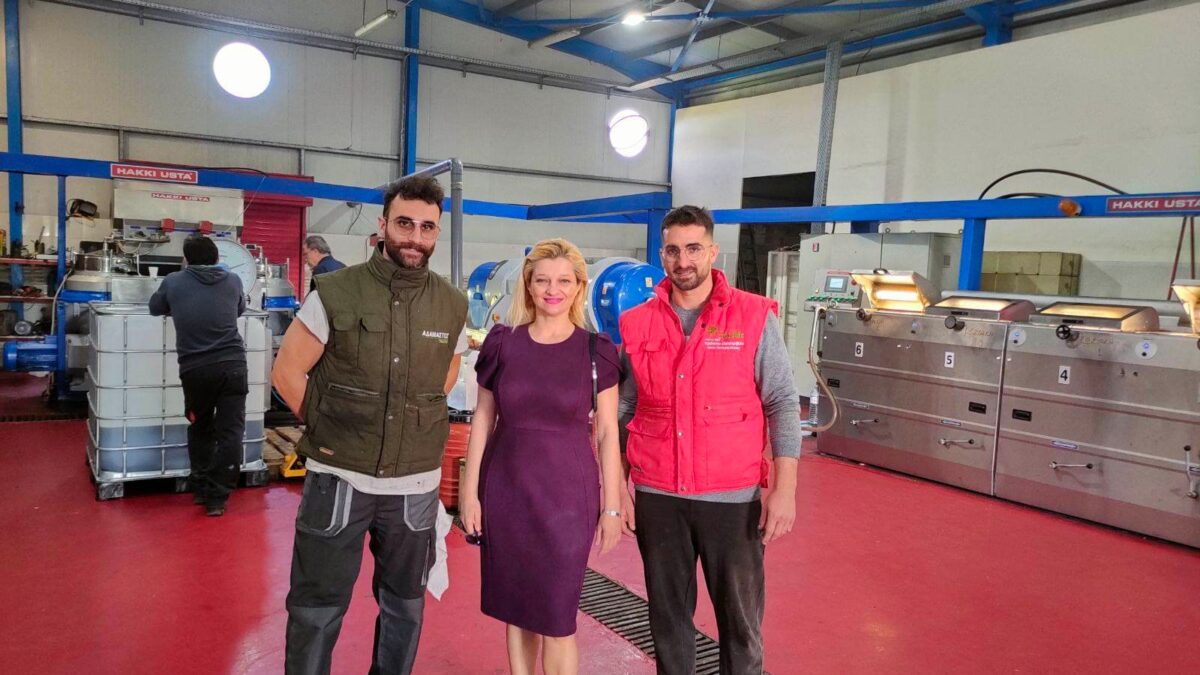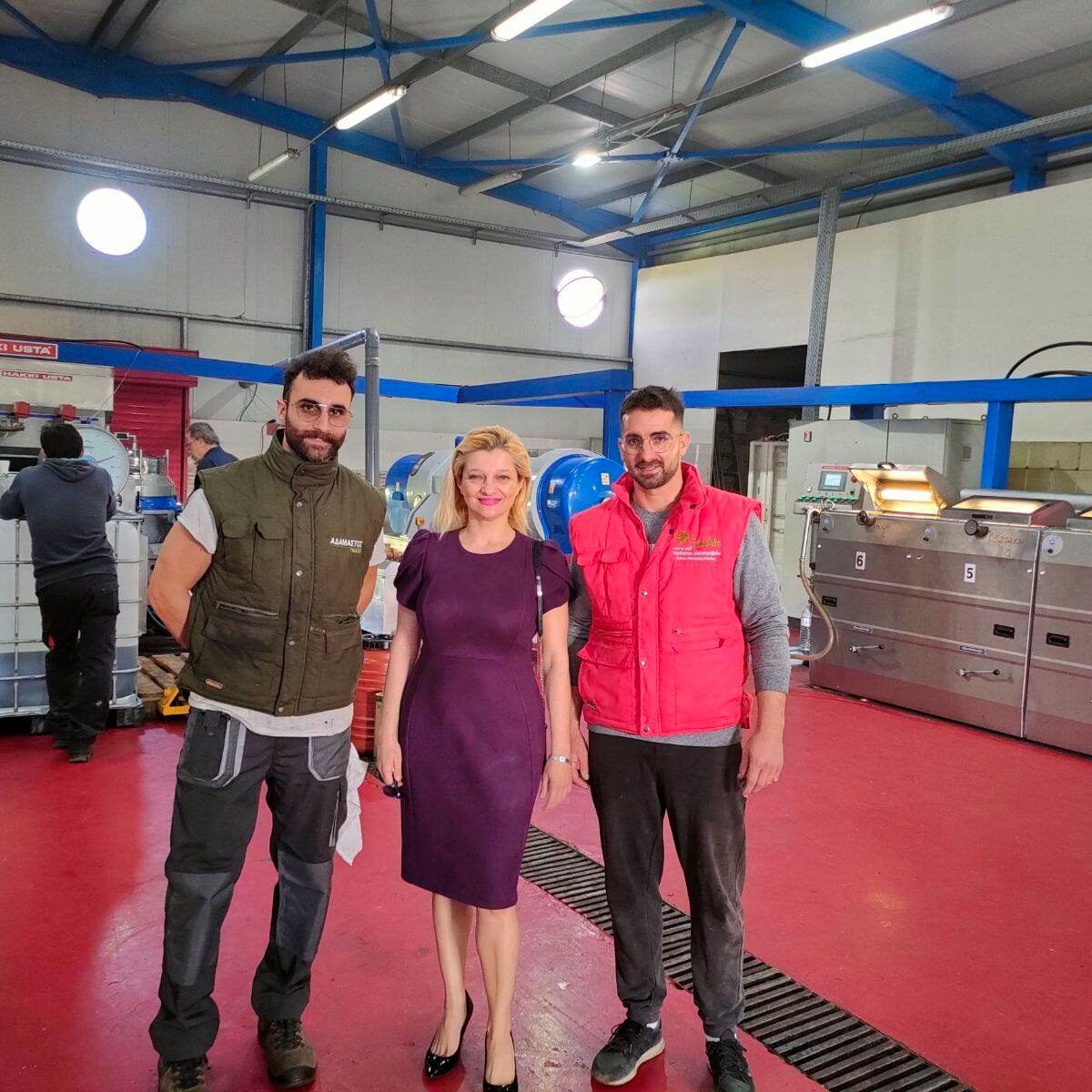 Η κα. Αυγερινοπούλου είχε την χαρά να ξεναγηθεί στους χώρους του ελαιοτριβείου, να συζητήσει μαζί τους τα προβλήματα αλλά και τις προοπτικές του προϊόντος, υπογραμμίζοντας την αποδεδειγμένη θρεπτική αξία του ελαιόλαδου για την υγεία του ανθρώπου αλλά και το άνοιγμα οριζόντων για απεριόριστες γαστρονομικές δυνατότητες, οι οποίες αναγνωρίζονται ολοένα και περισσότερο από τους πιο φημισμένους σεφ ανά τον κόσμο όπως επίσης της ευρέως αναγνωρισμένες θεραπευτικές ιδιότητες των παραγώγων της ελιάς στην πρόληψη αρκετών ασθενειών.