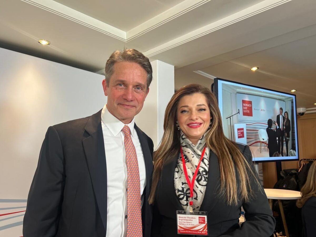 Με την ολοκλήρωση των εργασιών του Monaco Day in Davos, η Δρ. Διονυσία-Θεοδώρα Αυγερινοπούλου πραγματοποίησε συνάντηση με τον Πρίγκιπα Αλβέρτο Β’ του Μονακό. Στη συνάντηση αυτή συζητήθηκαν οι προοπτικές συνεργασίας μεταξύ Ελλάδας και Μονακό σε θέματα προστασίας της γαλάζιας βιοποικιλότητας.