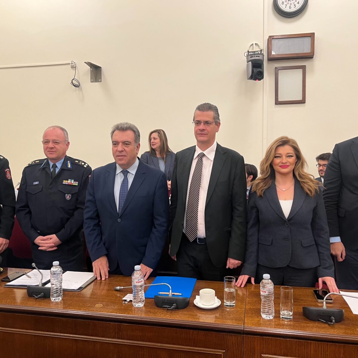 Τα μέλη των Επιτροπών ενημέρωσαν ο Υπουργός Κλιματικής Κρίσης και Πολιτικής Προστασίας, κ. Ιωάννης Κεφαλογιάννης, ο Υφυπουργός, κ. Κωνσταντίνος Κατσαφάδος, ο Γενικός Γραμματέας Δασών, κ. Ευστάθιος Σταθόπουλος και ο Αρχηγός του Πυροσβεστικού Σώματος, Αντιστράτηγος κ. Θεόδωρος Βάγιας. Επίσης παρευρέθηκε και ο κ. Ηλίας Παππάς, Υπασπιστής του Αρχηγού του Πυροσβεστικού Σώματος Ελλάδας.