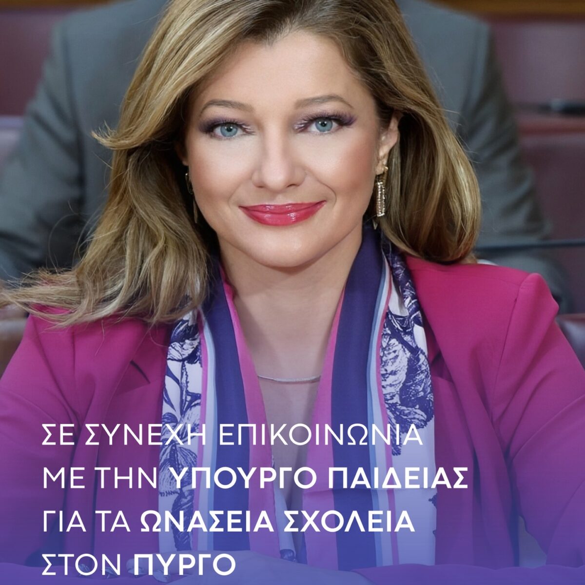 Με στόχο την διασφάλιση κλίματος δημιουργικής συνεργασίας, η Βουλευτής Ηλείας της Ν.Δ, Δρ. Διονυσία-Θεοδώρα Αυγερινοπούλου, ολοκλήρωσε έναν κύκλο ουσιαστικών επαφών για τη λειτουργία των νέων Πρότυπων «Ωνάσειων» Σχολείων στον Πύργο. Σε αυτό το πλαίσιο, είχε συνάντηση με εκπρόσωπο των εκπαιδευτικών που υπηρετούν στις υπό αναβάθμιση σχολικές μονάδες, στην διάρκεια της οποίας η Βουλευτής άκουσε με προσοχή τους προβληματισμούς τους για επαγγελματική σταθερότητα, κατά τη μετάβαση στο νέο περιβάλλον που διαμορφώνεται. H κα Αυγερινοπούλου επικοινώνησε με την Υπουργό Παιδείας, Θρησκευμάτων και Αθλητισμού, κα Σοφία Ζαχαράκη, μεταφέροντας τις σκέψεις της εκπαιδευτικής κοινότητας.